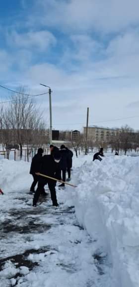 Жаңатас көпсалалы колледжінде құрылған "Мейірімді жүрек" еріктілер клубының студенттері мен колледж қызметкерлері колледж ғимаратының айналасын қардан тазарту жұмыстарын жүргізді.