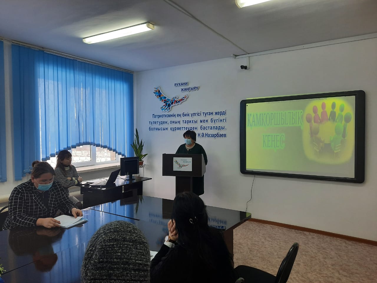 Күн тәртібінде 4 мәселе бойынша А.Койлыбекова сөз алды. Қайырымдылық акциялар, материалдық көмек т.б. атқарылған жұмыс барысына тоқталды. Желтоқсан айында жеке кәсіпкер «Арзан» әмбебап дүкен иесі А.Байымбетовтың демеушілігімен колледждің қыздар әжетханасына жеке кабиналар қойылды.
