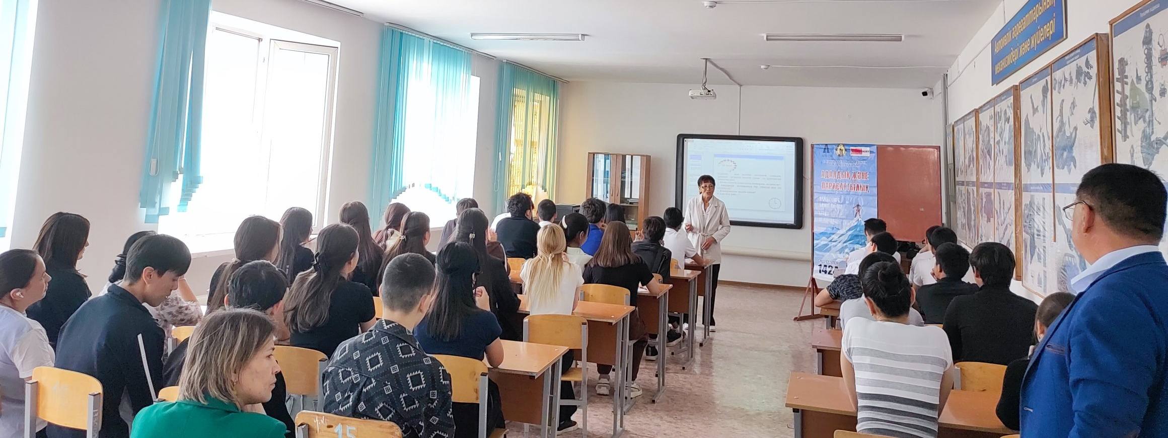 Жаңатас көпсалалы колледжінде «Саналы ұрпақ» жобасы аясында «Таза сессия» акциясы: «Сыбайлас жемқорлықсыз болашақ» тақырыбында кездесу өтті.