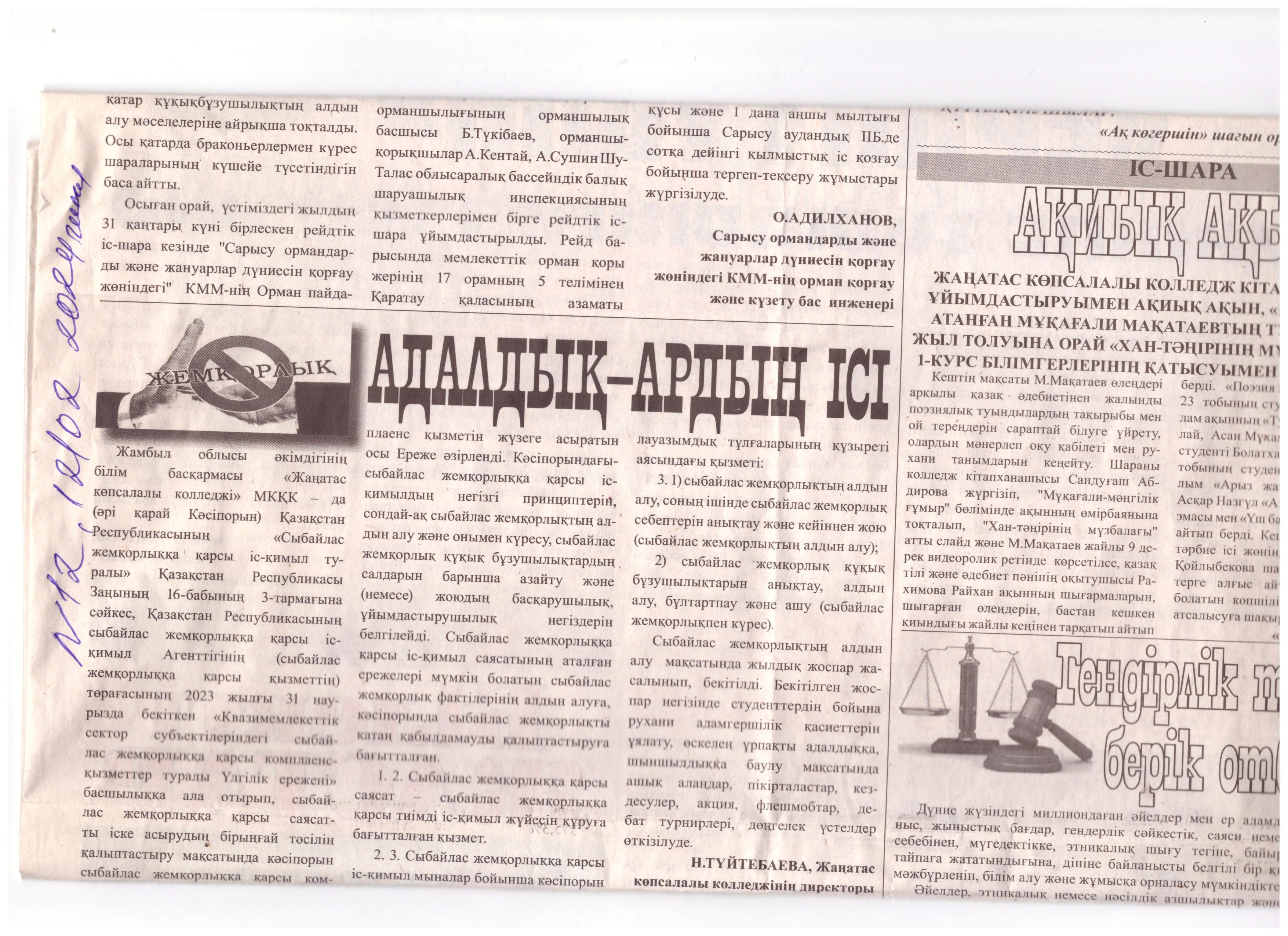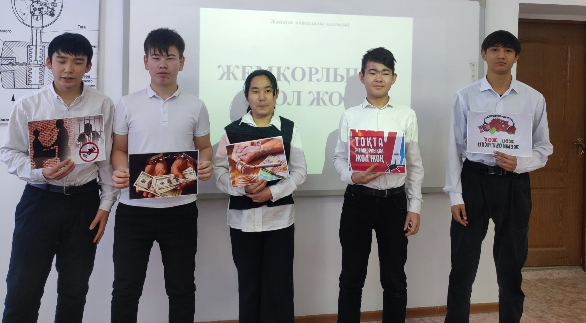 Өз ойларын еркін жеткізе білу қабілеттерін дамыту, сонымен қатар жас буынды әділдікке, адалдыққа баулу мақсатында студент жастармен "Жемқорлыққа жол жоқ!" тақырыбында пікір талас ұйымдастырылды.