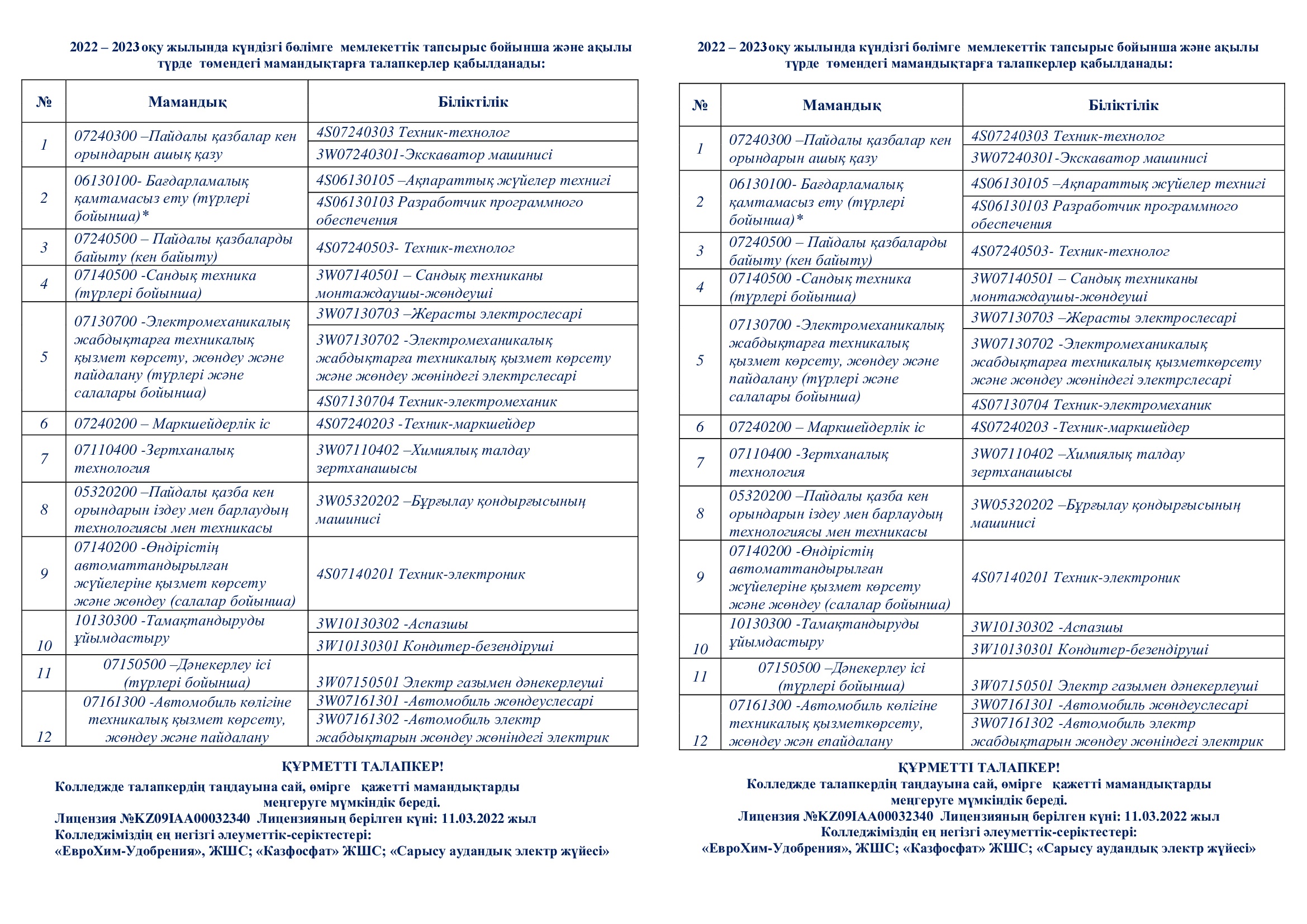 ҚАБЫЛДАУ МЫНА МЕРЗІМДЕ ЖҮРГІЗІЛЕДІ: