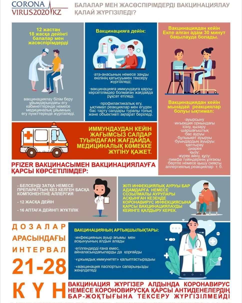 Короновирус инфекциясына қарсы колледж студенттері 14-17 жас аралығындағы жасөспірімдер «Pfizer» вакцинасын салдыруда