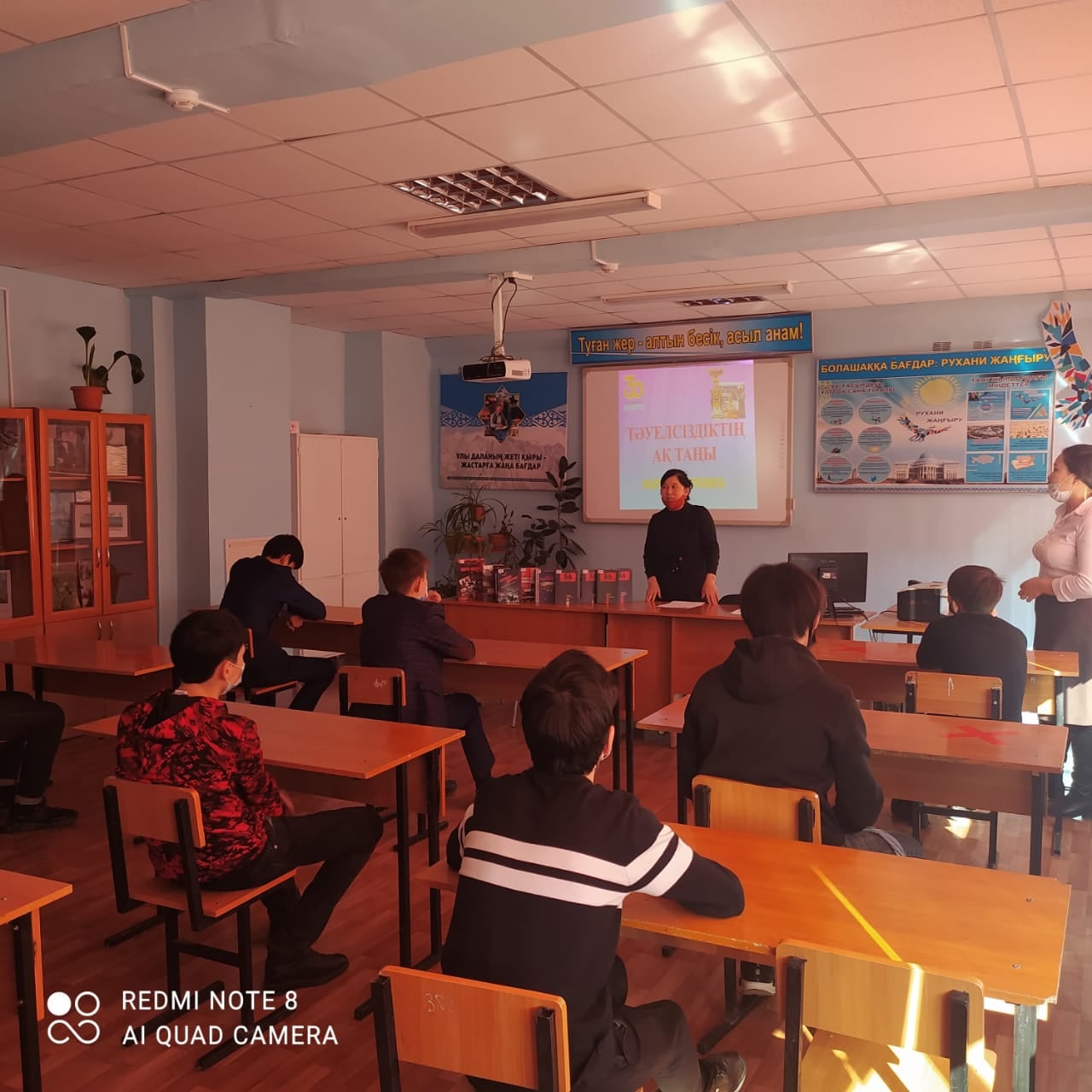Мақсаты : Қазақстанның ең қастерлі құндылығы - Ел тәуелсіздігін қастерлеу, ұлықтау; Ұлы даланың ұлы мұраты –Тәуелсіздік , ол теңгесі жоқ ұлы ұғым, еркіндік екенін жас ұрпақтың бойына сіңіру, отансүйгіштікке тәрбиелеу.