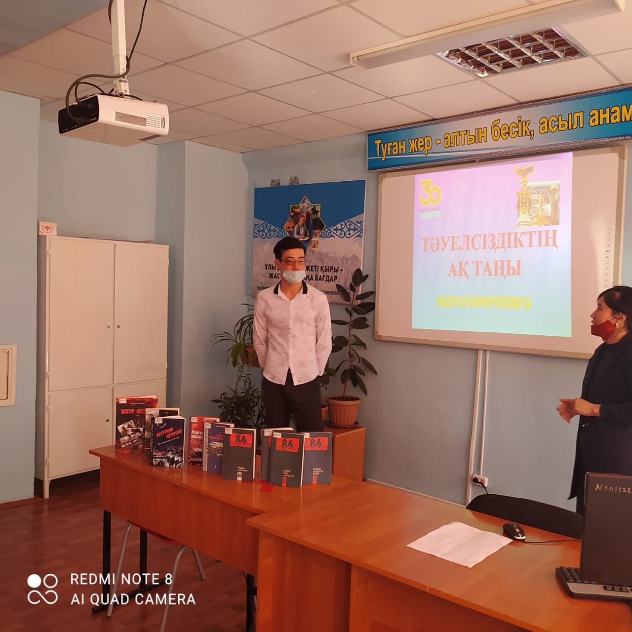 Сарысу аудандық кітапхана абонемент бөлімімен бірлесе Жаңатас көпсалалы колледжің кітапхана менгерушісі Ж.Жұмабекова 1курс студенттерімен «Тәуелсіздіктің ақ таңы» атты оқырман конференциясын өткізді. Конференцияда оқырмандарға арналған Болатбек Төлепберген «Қасиетім-Желтоқсан », «Желтоқсан көтерілісі » , Көлбай Адырбекұлы «Соңғы Репрессия», «Елдікті сақтаған ерлік», « Азаттық аңсағандар » оқулықтары таныстырылып, студенттер өздерінің «Тәуелсіздікке арналған» тақырыпта жыр шашуларымен бөлісті.