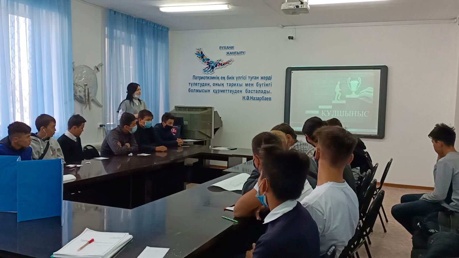 Колледж психологы А.Есболаева мен социолог А.Айдаралиеваның ұйымдастыруымен кәмелетке толмағандардың тіршілік қауіпсіздігін қамтамасыз ету , өмір сүру ортасында қауіпсіз жүріс-тұрыс мәдениетіне баулу, құқық бұзушылықтың алдын алу мақсатында «Мен қандай студентпім» атты психологиялық тренинг сабағы өткізілді. Тренингте жасөспірімдердің өзіндік көзқарастары, өз-өзіне баға беру мүмкіншіліктері, өз мүмкіндіктерін аша білуге, жалпы алдына мақсат қоя білуге ықпал ету аясында психологиялық ақыл кенестер беріліп, түсіндірме жұмыстары жүргізілді. Жеке тұлғаның өз-өзіне және өзгені сыйлауға түркі болатын мотивациялық «Мақсатқа жету жолы қандай?» тақырыпта бейнеролик көрсетіліп, «Өзінді қалай қабылдайсын?» , «Мақсатқа жету, арман тілектерінің орындалу үшін не істеуіміз керек?» деген сұрақтарына жауап жазу арқылы өз ойларын ортаға салып, қағаз бетіне түсірді.
