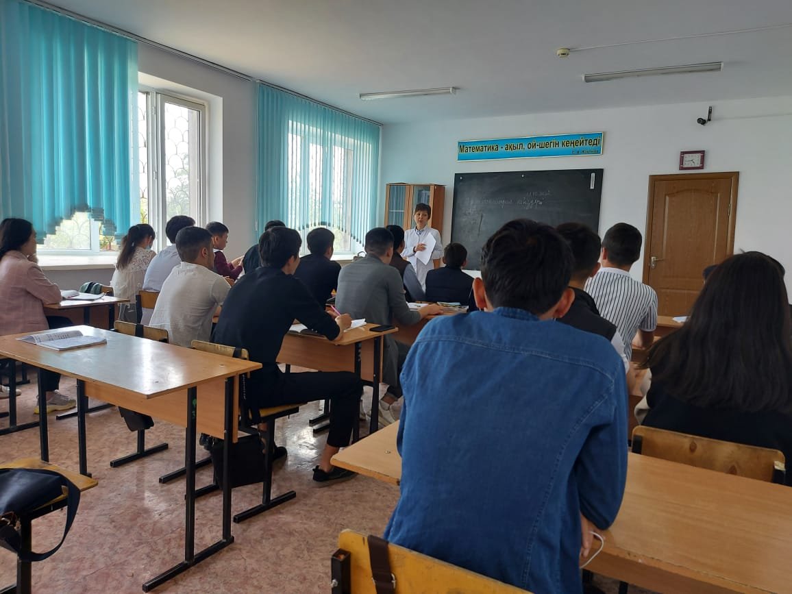 Колледж медбикесі Н.Абдулаеваның ұйымдастыруымен, ҚР ІІМ есірткі қылмысына қарсы, есірткінің жасөспірімдердің ағзасына зияны, оның алдын алу туралы құқықтық түсіндіру жұмыстары жүргізіліп, "Зиянды әдеттер, олардың ағзаға әсері" тақырыбында диктант алынды.