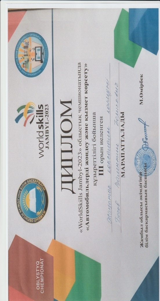 - «Автокөлікті жөндеу, пайдалану және қызмет көрсету» құзыреттілігі бойынша Тайтолеу Нургалиұлы ІІІ дәрежелі дипломмен марапатталды.