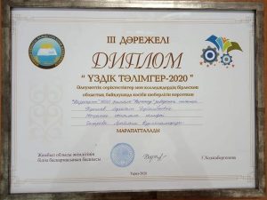 В областном конкурсе «Лучший наставник 2020», организованном «Центром развития технического и профессионального образования» Департамента образования Жамбылской области, нашим социальным партнерством «КазФосфат», ТОО «Каратау», Тусипов Мукагали Дуйсенбаевич и Жанатасский многопрофильный колледж Арайлым Онгарова, студентка специальности «Автоматика и управление», награждена дипломом III степени. Директор колледжа Н.Е. Туйтебаева поздравила Тусипова Мукагали Дуйсенбаевича с победой и пожелала за счет социального партнерства иметь много талантливых и квалифицированных студентов.