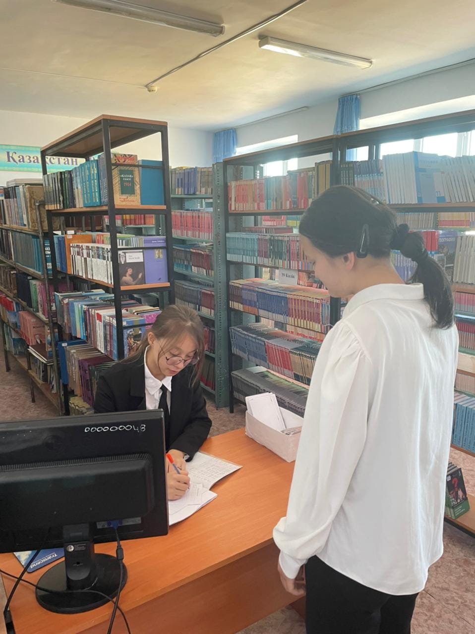 В Жанатасском многотраслевом колледже в рамках проекта «Оқуға құштар» прошел день самоуправления «Кітапханашы демек креативті». Студенты колледжа пробовали себя в роли библиотекарей, оказывали услуги сами себе, т.е. заполняли журналы, формуляры, писали друг другу книги для домашнего чтения. Библиотекарь призвала школьников следить за чистотой книг.